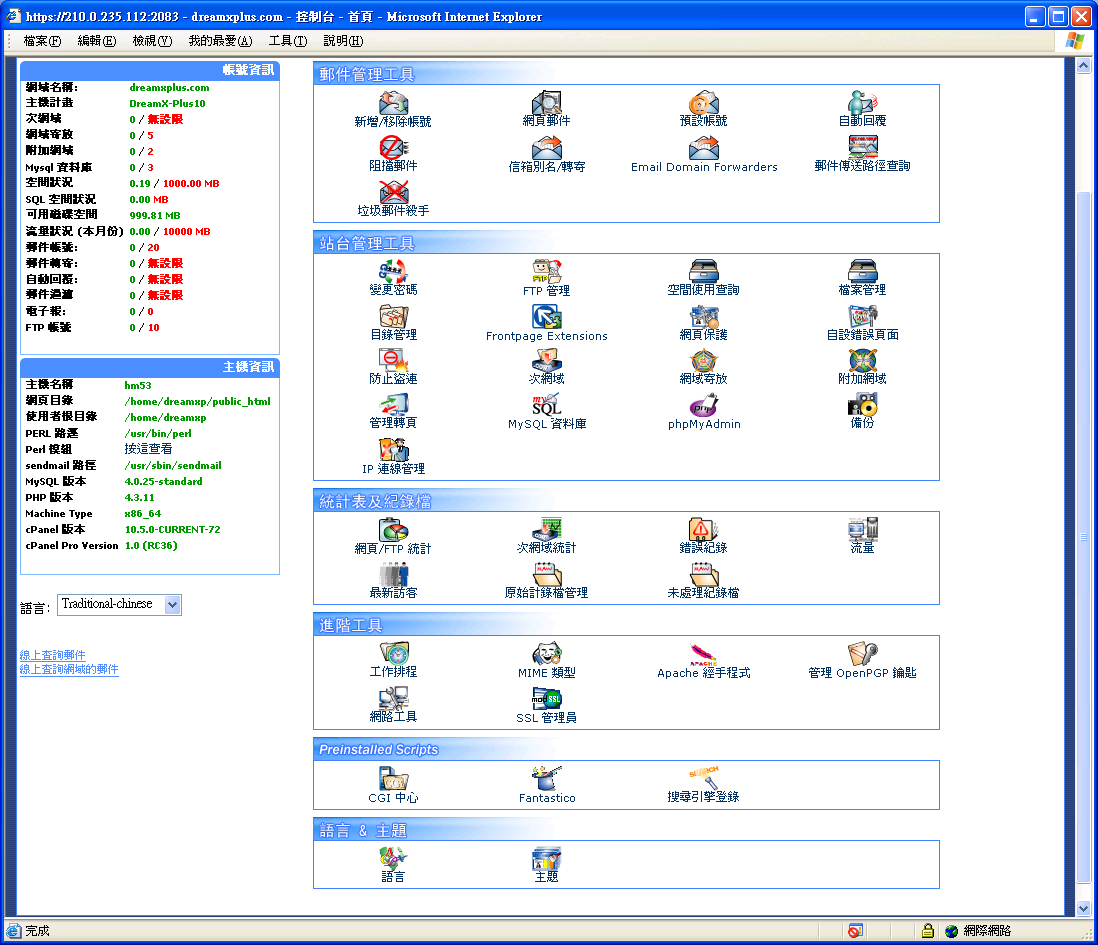 功能最强的网站管理工具,让你管理网站、电邮、数据库等 |