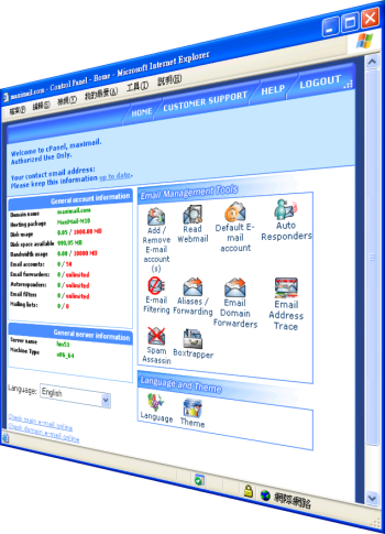 可自行设立电邮帐户、电邮别名、自动转发、电邮组别、自动回复等